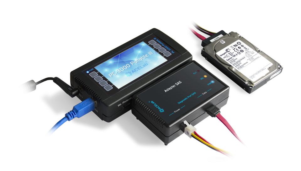 The adapter lets you work with SAS HDD and SSD in the Data Extractor software.