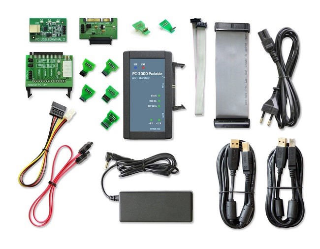 The PC-3000 Portable is a mobile hardware-software solution intended for diagnosing and repairing HDDs based on SATA (Serial ATA) and PATA (IDE) interfaces for numerous vendors (Seagate, Western Digital, Fujitsu, Samsung, Maxtor, Quantum, IBM (HGST), HITACHI, TOSHIBA), for various capacities (from 500 MB to 6 TB) and various form factors: 3.5" - desktop drives, 2.5" and 1.8" - laptop drives.