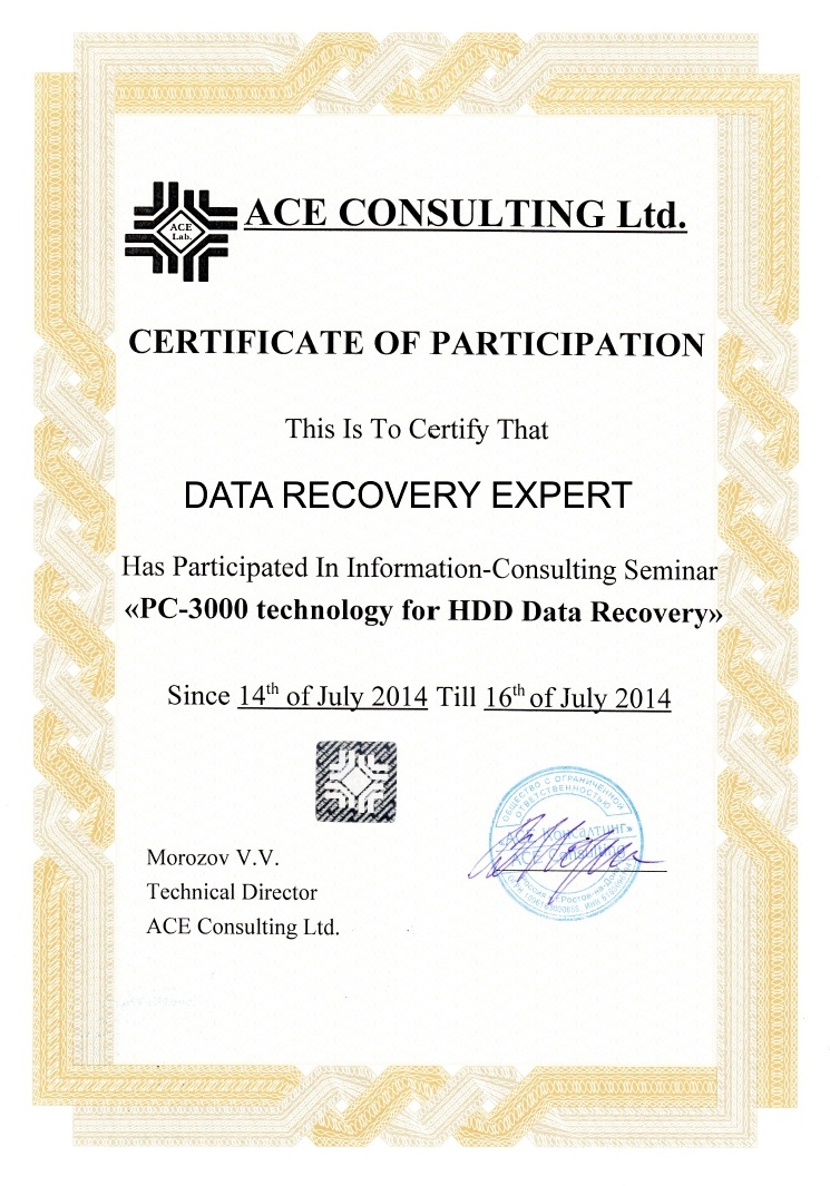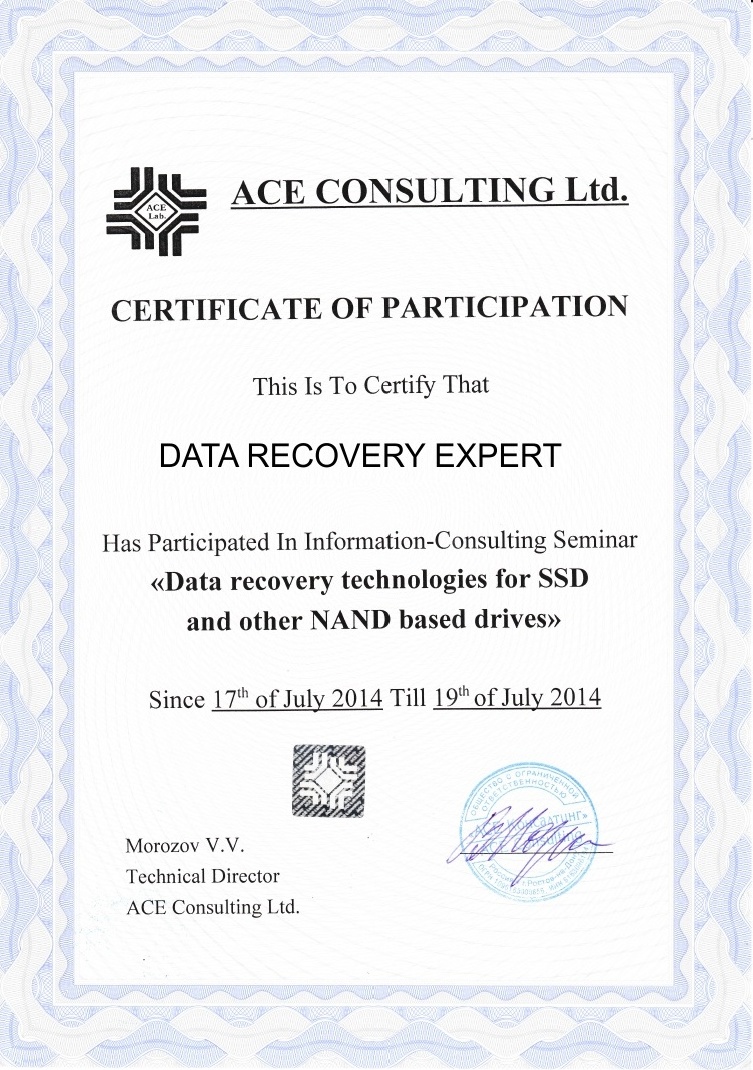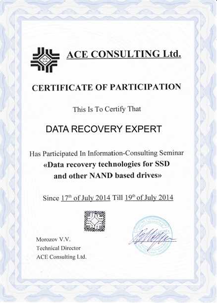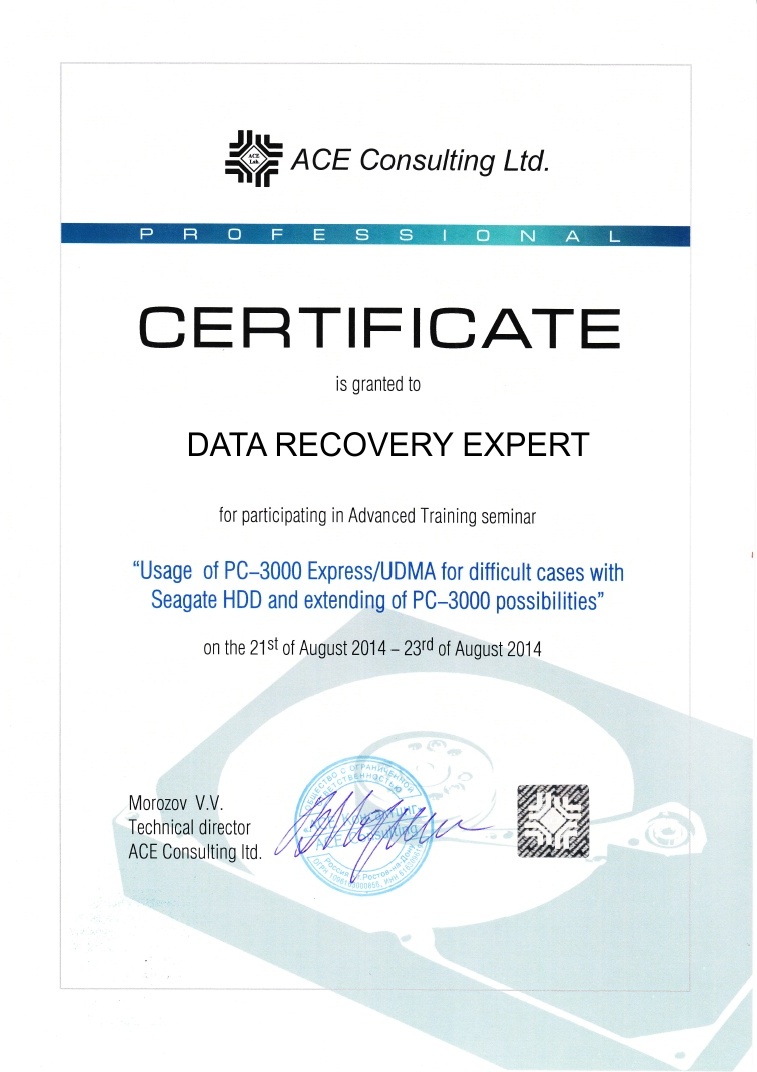 Oleg is highly experienced in electronic devices development, repair, and data recovery. He is also a certified engineer in computer service and computer repair, and has certificates from the world's leading computer companies, such as Toshiba, Asus, Dell, WD, Seagate. Oleg also takes part in the annual training provided by Ace Lab, the leading company in data recovery software and equipment development. He is trained in data retrieval from hard drives, RAID, NAND, QNAP, memory based devices, CD, DVD, and from all devices wherever there is a place to store information.