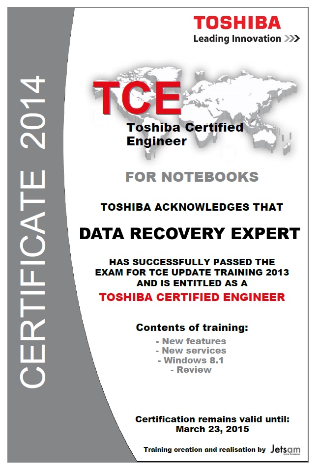 Our team is certified and experienced in professional laptop repair and our data recovery engineers have certificates and data recovery training from major computer companies. All of our engineers are compliant and hold TIA A+ level combined certificates.People are often surprised that our prices are lower, but it's because we do not spend money for advertisement and our success rate is so high. We try to do everything possible to recover everyone's data.